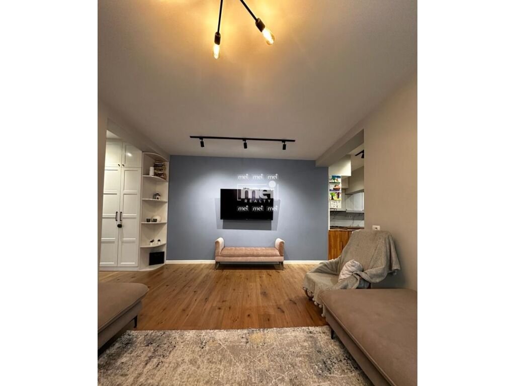 Apartamenti ka nje siperfaqe prej 101 m2. Organizohet ne dy dhoma gjumi, nje sogiorno se bashku me kuzhine, nje ballkon dhe nje tualet. Ndodhet ne katin e 9 te nje pallati te ri te pajisur me ashensor. Disponon te gjitha facilitetet e mundshme per shkak te lokacionit qe ka. Jepet me qira e pamobiluar. Per me shume informacion kontaktoni.