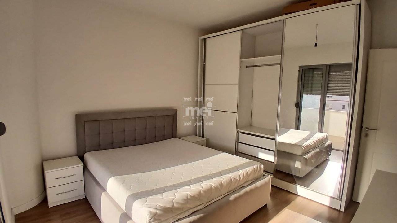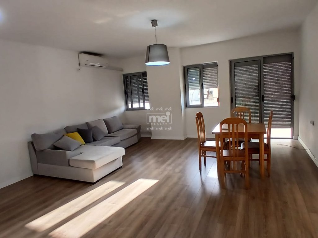 Apartamenti disponon 120m2 siperfaqe totale, te cilet organizohen ne korridor qe ben shperndarjen e ambienteve, salle ndenje me kuzhine, dy dhome gjumi, nje tualet dhe nje ballkon te gjate. Ndodhet ne katin e trete te nje pallati te ri me ashensor dhe mirembatje. Per me shume informacion apo nje vizite nga afer ju ftojme te kontaktoni.