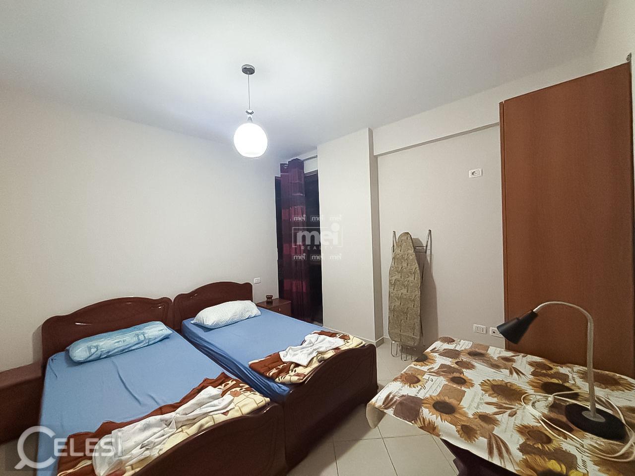 Apartamenti ka nje siperfaqe totale prej 90 m2 dhe ndodhet ne katin e katert te nje pallat te ri, me ashensor. Organizohet ne nje dhome ndenje se bashku me kendin e kuzhines, dy dhoma gjumi, dy tualet dhe dy ballkone. Disponon dokumentacion te rregullt hipotekor. Per nje vizite ne prone apo ne prona te ngjashme na kontaktoni.