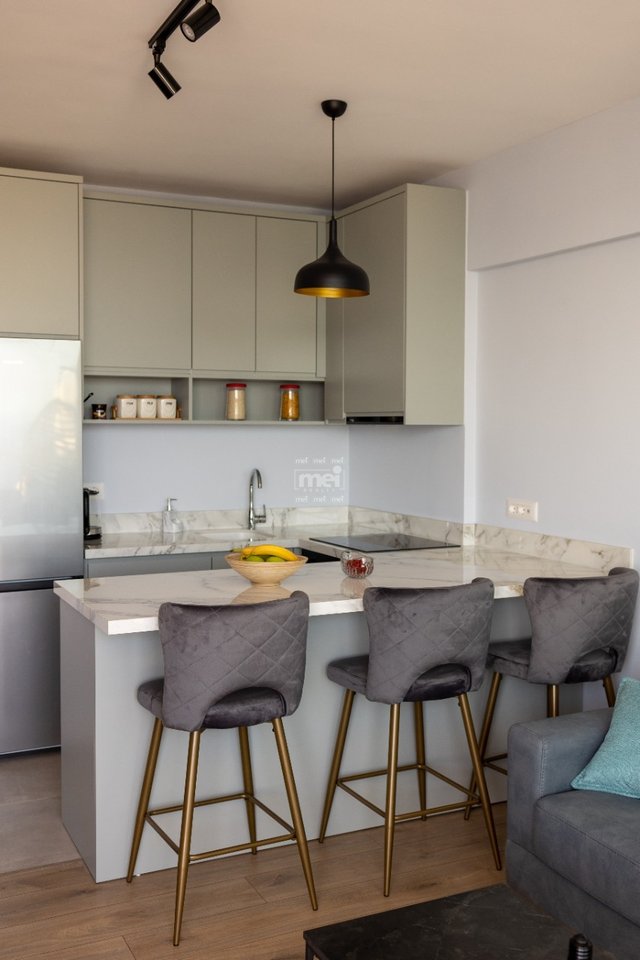 Apartament modern 2+1, i pozicionuar në katin e 5-të të një pallati të mirëmbajtur me ashensor, që ofron pamje të mrekullueshme nga deti.