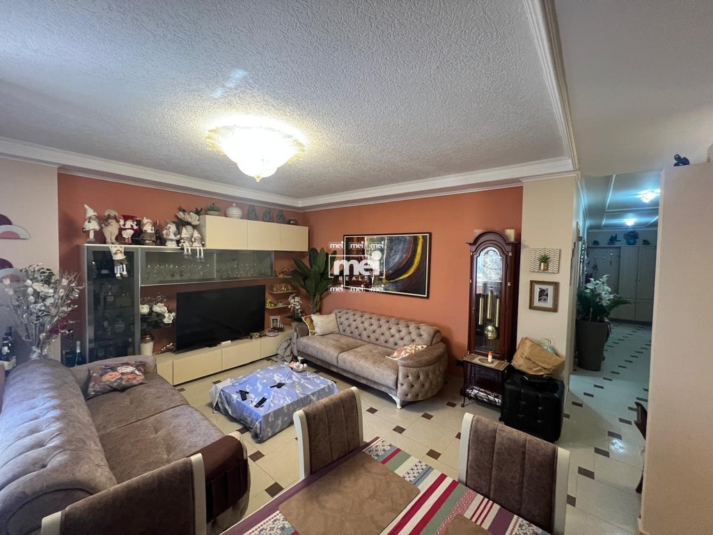 Apartamenti ka nje siperfaqe totale prej 100m2 dhe ndodhet ne katin e peste te nje pallat te ri, me ashensor. Organizohet ne nje dhome ndenje se bashku me kendin e kuzhines, dy dhoma gjumi, nje tualet dhe dy ballkone. Disponon dokumentacion te rregullt hipotekor. Per nje vizite ne prone apo ne prona te ngjashme na kontaktoni.