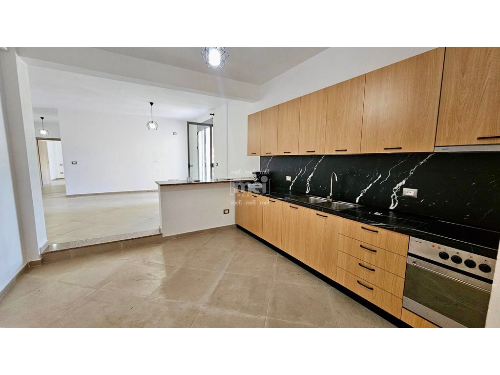 Apartamenti ka nje siperfaqe totale prej 110 m2 dhe dhe siperfaqe e brendshme 100 m2 eshte e pozicionuar ne pallat te ri me ashensor. Zona ne te cilen ndodhet eshte shume e favorshme dhe ofron akses ne te gjithe fasilitetet e nevojshme per nje jetese te qete. Organizohet ne nje dhome ndenje se bashku me kendin e kuzhines, dy dhoma gjumi dhe dy tualete. Apartamenti eshte i pamobiluar. Per me shume infromacion ose nje vizite ne prone me kontaktoni.