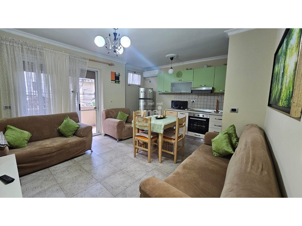 Apartamenti ka nje siperfaqe prej 106 m2 dhe ndodhet ne katin e dyte banim te nje pallati te mirembajtur. Organizohet ne nje holl qe ben shperndarjen ne dhomen e ndenjes se bashku me kendin e kuzhines, dy dhoma gjumi dhe nje tualet. Apartamenti eshte i sapo mobiluar dhe disponon te gjitha pajisjet elektroshtepiake. Zona ne te cilen ndodhet eshte shume e preferuar per banim. Per nje vizite ne prone apo ne prona te ngjashme na kontaktoni.