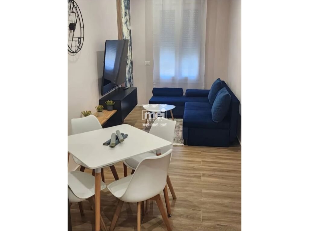 Apartamenti organizohet ne nje sogiorno se bashku me kuzhine, dy dhoma gjumi , nje tualet dhe nje ballkon. Eshte i rinovuar dhe i mobiluar totalisht me kushte bashkekohore. Ndodhet ne qender te qytetit zone e cila disponon te gjitha facilitetet e mundshme. Per me shume informacione kontaktoni.